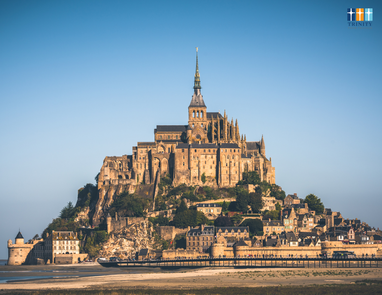 This tidal island, located off the northwestern coast of Normandy, is one of the earliest places inscribed on the UNESCO World Heritage List due to its rich heritage and dramatic natural setting. Mass is celebrated at the parish church of St. Peter in the village on the Mount (distinct from the Abbey above).